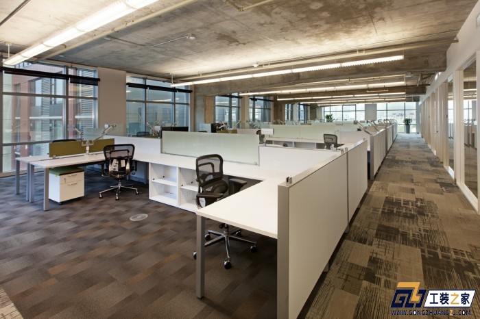 此外,工业风的办公室装修设计风格给人直观的感受就是“酷”,很前卫,善于去挑战自我,打破生活中的条条框框。其中裸露的管线通过各种颜色的搭配,使他们与室内整体装修风格协调,从而成为室内的一种视觉元素呈现出来,并且成为了一种视觉上的享受,再利用镜面、玻璃、金属等高反光的材质配合自发光、暗藏灯带、点光源等装饰照明手法,使整个空间增添了一丝精致的娱乐性,正是这种颠覆了传统的装修方式也往往也是很吸引人的。